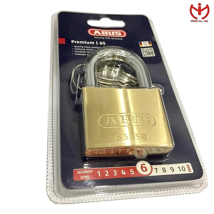 Ổ khóa ABUS 65/50 thân đồng rộng 50mm 4 chìa răng cưa - MSOFT