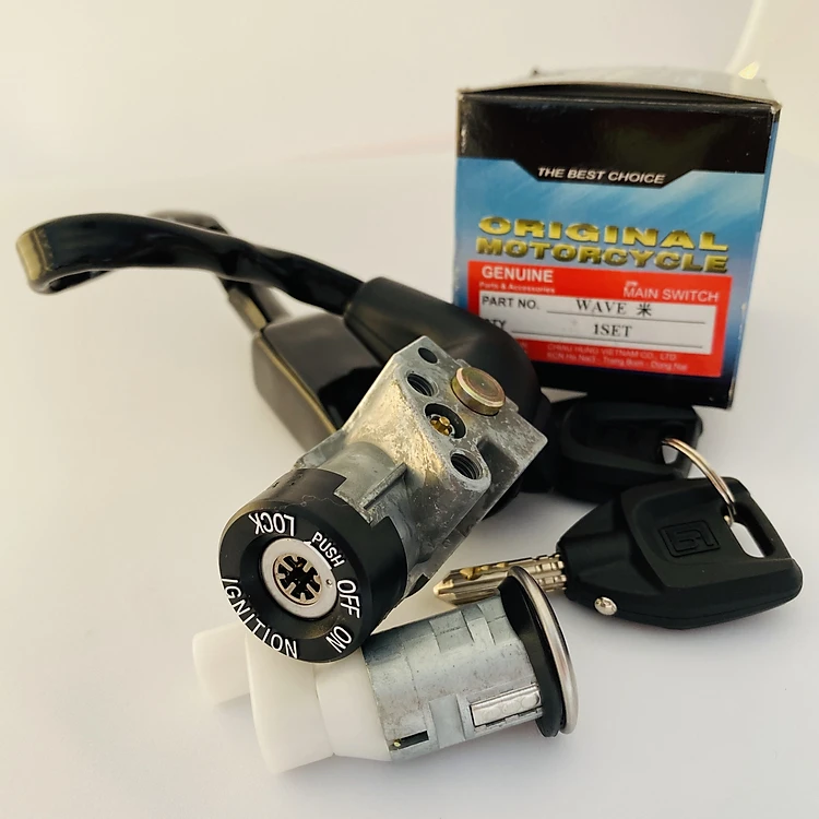 Sản phẩm bao gồm: bộ khóa điện, khóa yên và 2 chìa khóa 8 cạnh