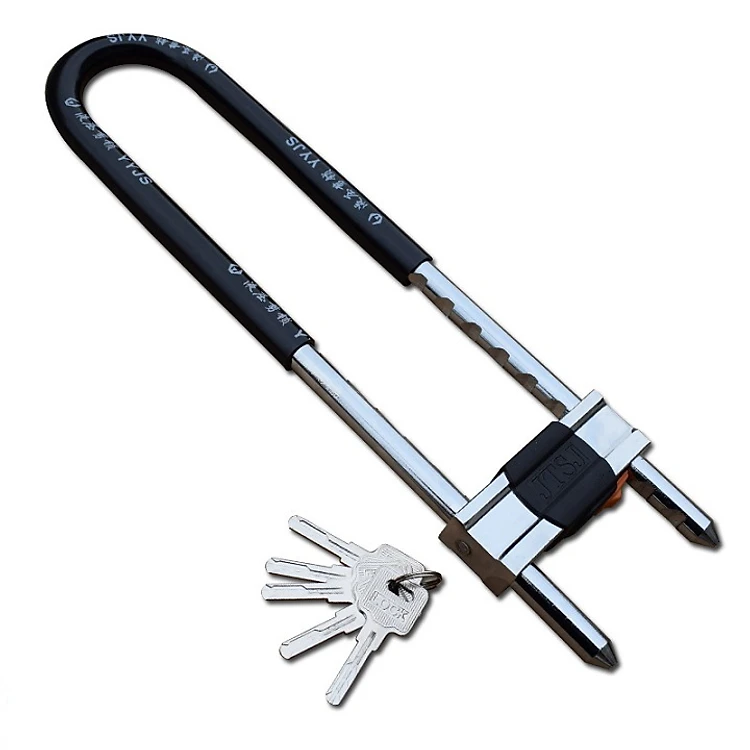 Khóa chữ U với 5 mức khóa, có thể thay đổi tùy thuộc vào không gian khóa. Dây khóa có độ dày 16mm, đầu dây khóa được bọc cao su, giúp bảo vệ dây khóa không bị trầy xước, tăng độ mới, và tuổi thọ sử dụng của ổ khóa
