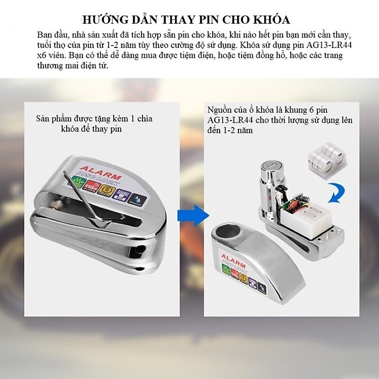 - Bộ sản phẩm bao gồm: 1x ổ khóa đĩa, 2x chìa khóa, 1x chìa khóa thay pin