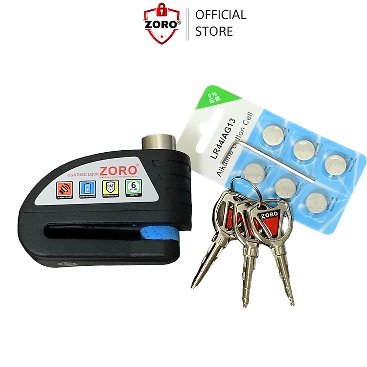 Ổ khóa đĩa xe máy báo động chống trộm ZORO chìa tròn màu đen - chất liệu thép chống gỉ chống nước - hàng chính hãng
