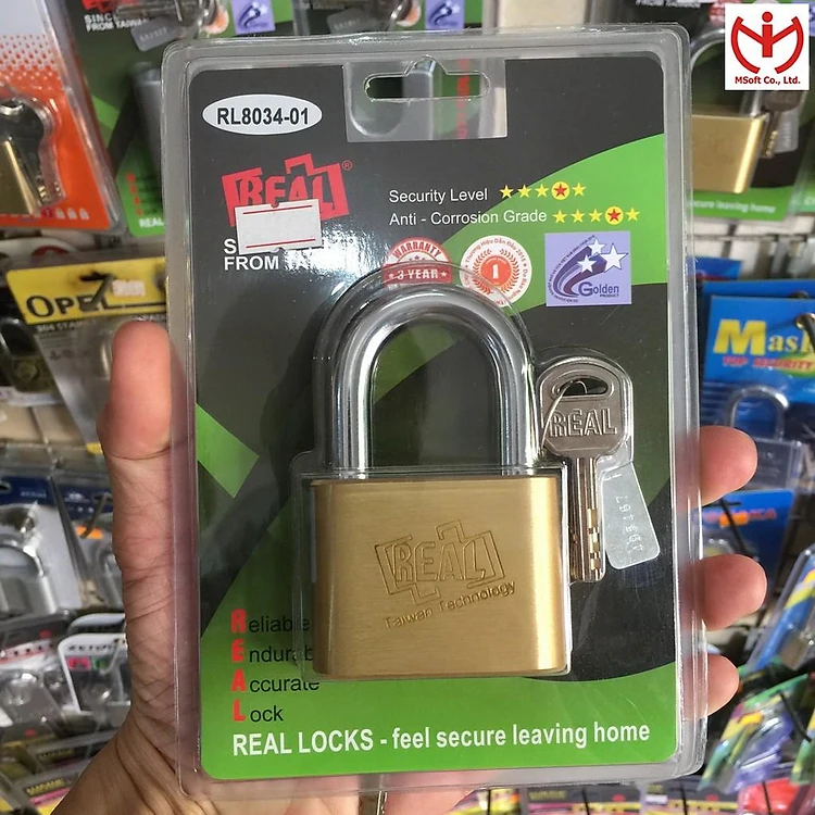 Ổ khóa Real RL8034-01 thân đồng rộng 60mm - MSOFT