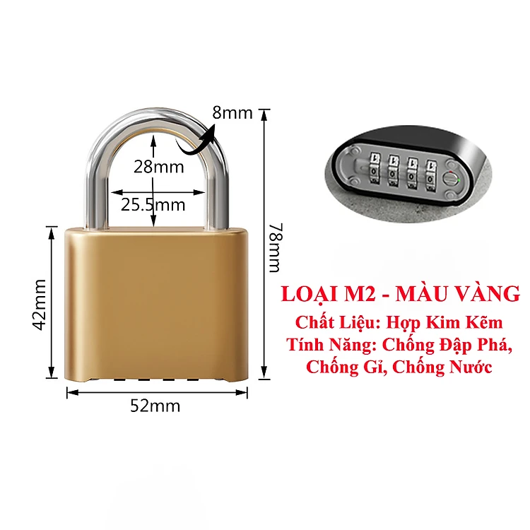 Ổ Khoá Số Khoá Mật Khẩu Cao Cấp KUNBE Chống Đập Chống Nước Hiệu Quả