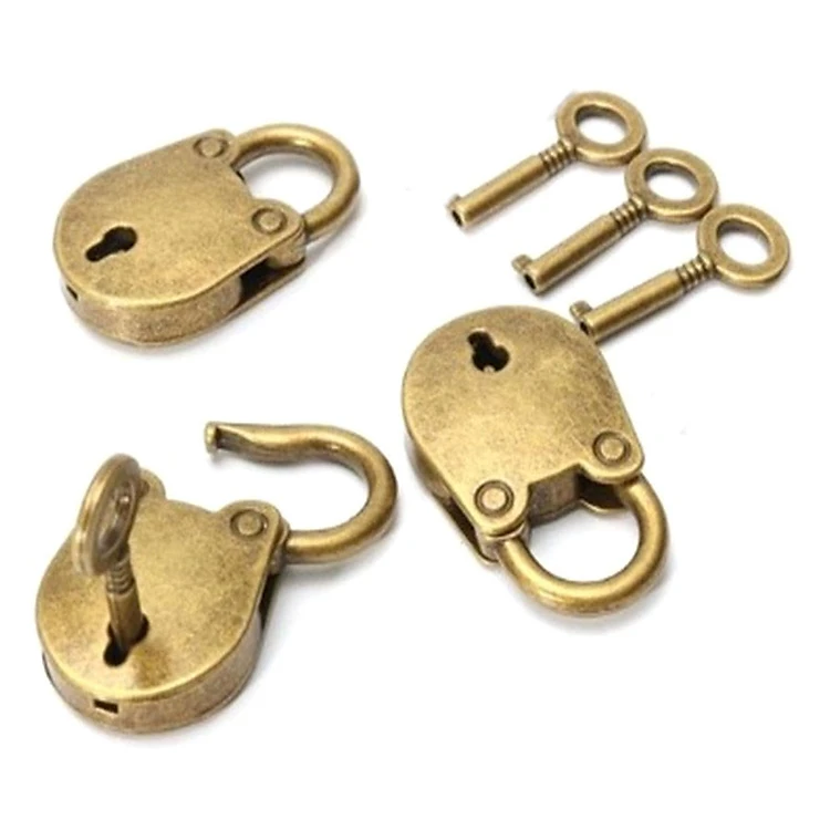 Ổ Khóa Và Chìa Khóa Phong Cách Cổ Xưa - Vàng (3 Chiếc)