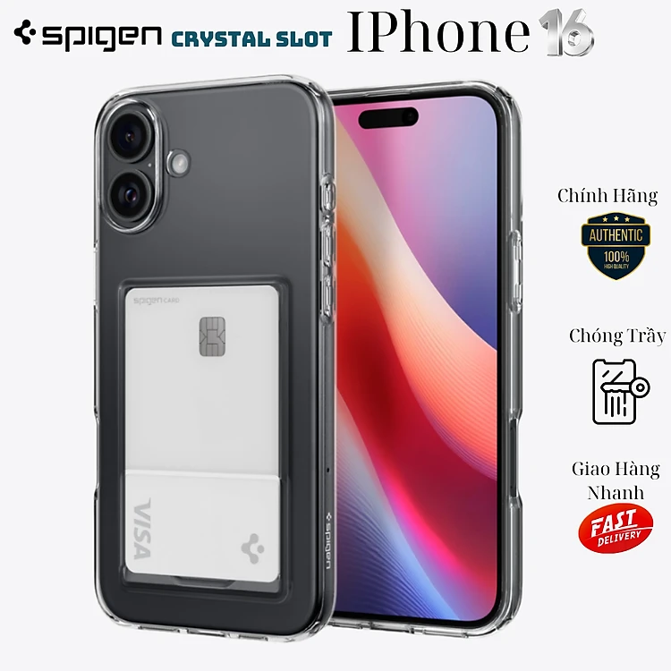 Ốp Lưng Spigen có khe đựng thẻ cho iPhone 16 Pro Max / 16 Pro / 16 Plus / 16, SPIGEN CRYSTAL SLOT, TPU chống sốc_ Hàng Chính Hãng