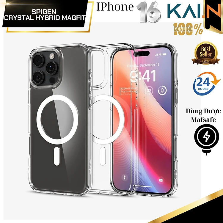 Ốp Lưng Spigen trong suốt sạc từ tính cho iPhone 16 Pro Max / 16 Pro, SPIGEN CRYSTAL HYBRID MAGFIT_ Hàng chính hãng