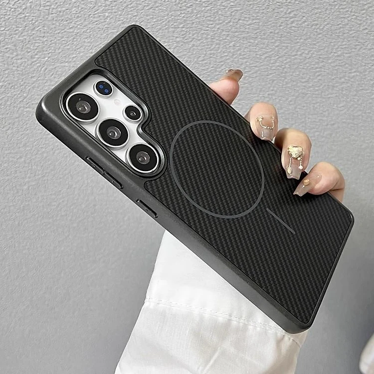 Ốp Lưng Vân Carbon Từ Tính Chống Sốc Hỗ Trợ Sạc Không Dây Cho Samsung Galaxy S25 Ultra / S24 Ultra Viền Silicon