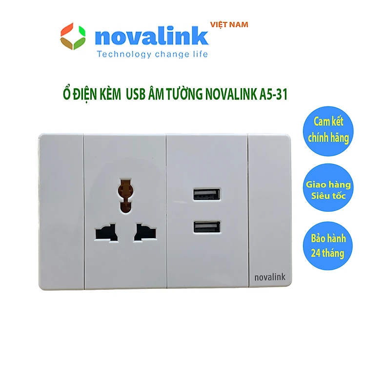 Tính năng vượt trội của ổ cắm USB âm tường kèm ổ điện Novalink A5-31 chính hãng