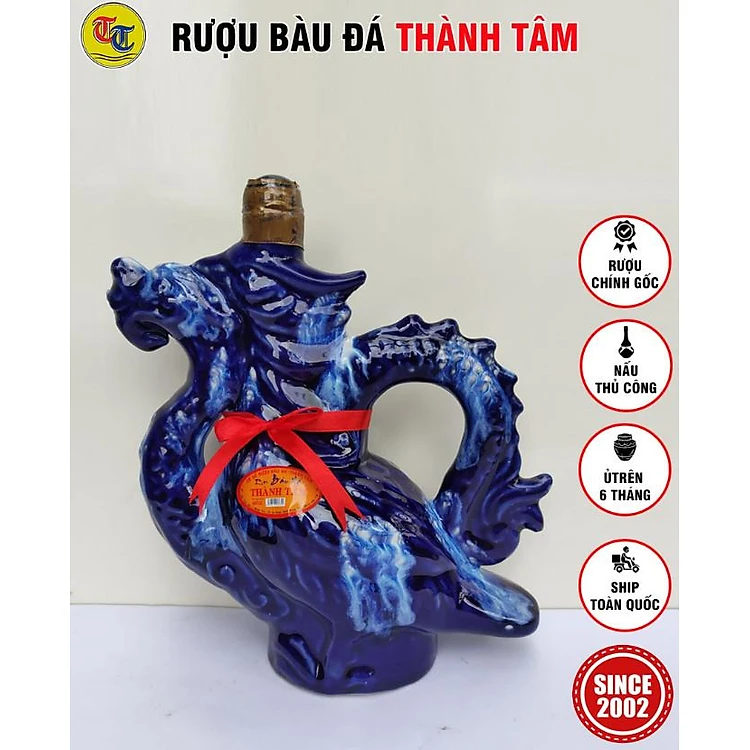 Đặc Sản Bình Định - Rượu Bàu Đá Thành Tâm Thuyền Chim (Màu xanh bút bi) 700ml - OCOP 3 Sao