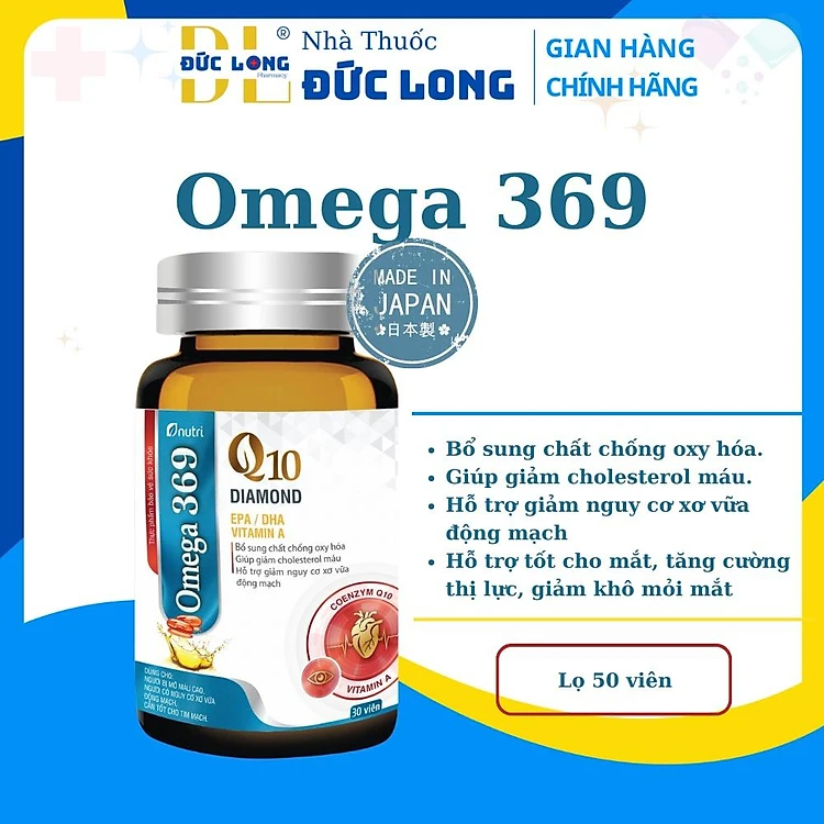 Omega 369 Q10 Diamond – cho Trái tim khỏe, mắt sáng, GIẢM CHOLESTEROL, ngủ ngon – Hộp 1 lọ x 50 viên