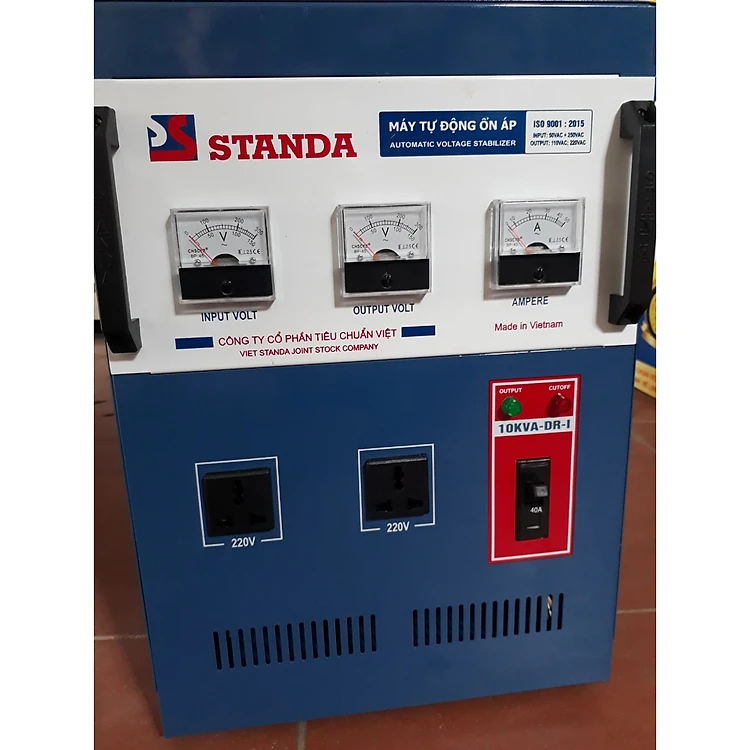 ỔN ÁP STANDA 10KW GIẢI 50-250V THM CÓ 3 ĐỒNG HỒ VÀ 2 Ổ CẮM