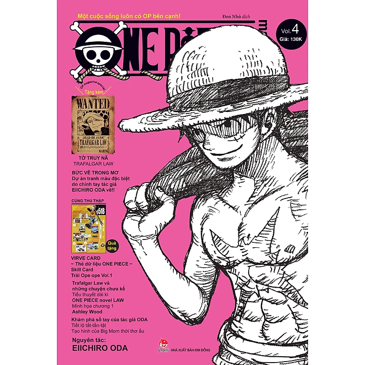 VỚI “OP”, CHÚNG TA SẼ TẠO RA MỘT NỀN VĂN HÓA. Điều mà đội ngũ thực hiện tác phẩm ONE PIECE luôn hướng đến là “một cuộc sống luôn có OP bên cạnh”. Đó là lí do họ khởi động một dự án mới toanh chưa từng có trước nay, nhằm giúp độc giả thưởng thức OP không chỉ qua truyện tranh, mà còn qua nhiều kênh khác nhau như sách tranh, âm nhạc, ẩm thực, ảnh chụ Và ONE PIECE MAGAZINE là một trong số đó!! Vol.4 với tone hồng neon sẽ mang đến rất nhiều nội dung thú vị! Trong đó có Tiểu thuyết dài kì "ONE PIECE novel LAW" chương 1, khám phá sổ tay của tác giả Oda: Tiết lộ tất-tần-tật tạo hình của Big Mom thời thơ ấu, "ONE PIECE picture book: Chuyến phiêu lưu hoành tráng của Luffy", hay "Kumamoto phiêu lưu kí, khám phá mảnh đất nơi tác giả Eiichiro Oda sinh ra và lớn lên" Đảm bảo các Fan cuồng sẽ biết được thêm rất rất nhiều về thế giới của OP đấy!!