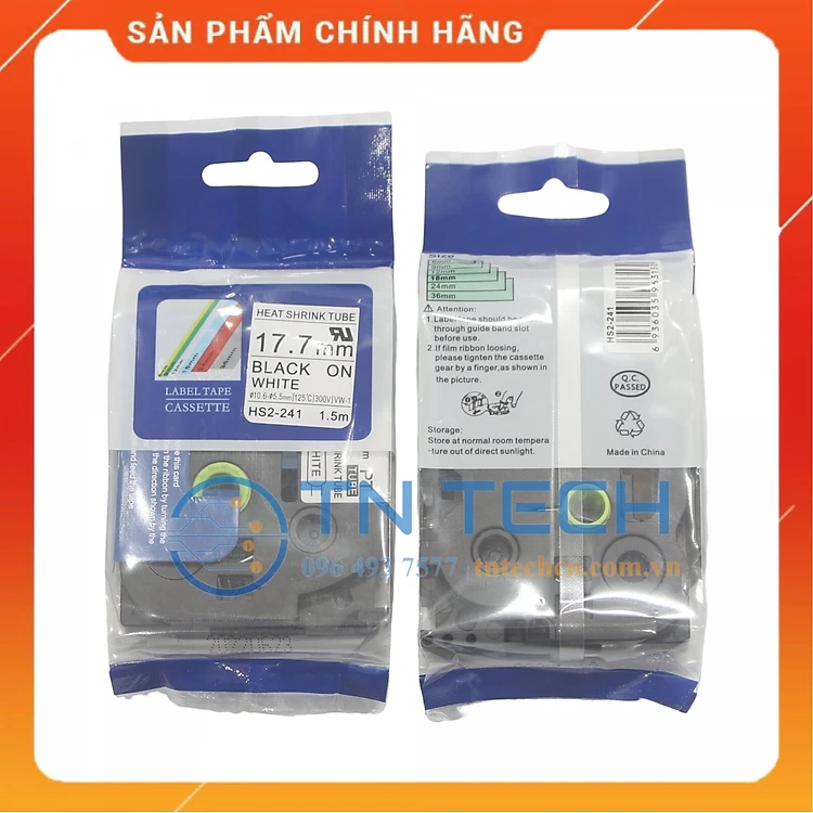 Ống co nhiệt HS2-241 - Đen nền trắng 17.7mm x 1.5m - Dùng cho máy in ống BROTHER - AIMO [Hàng nhập khẩu]