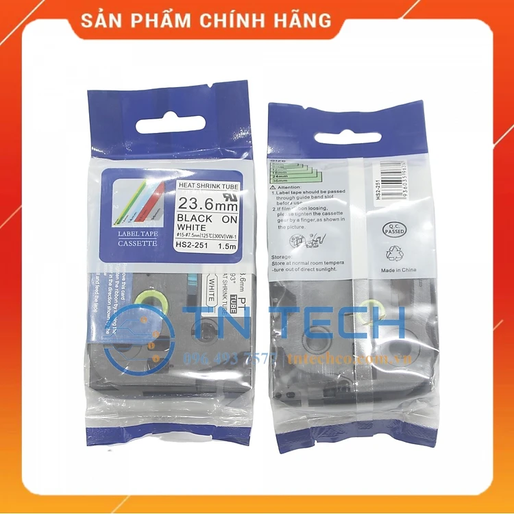 Ống co nhiệt HS2-251 - Đen nền trắng 23.6mm x 1.5m - Dùng cho máy in ống BROTHER - AIMO [Hàng nhập khẩu]