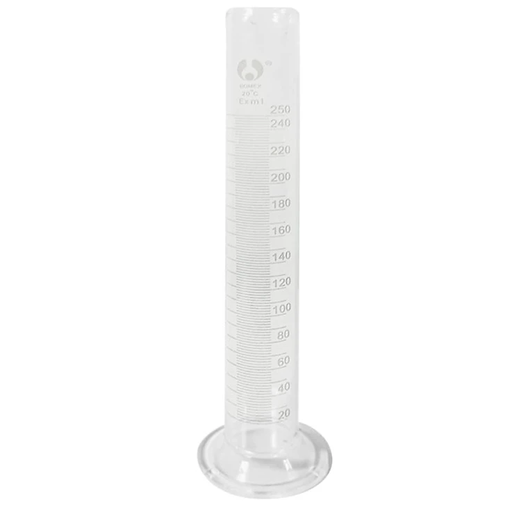 Dung tích ống đong có chân đế, chia vạch: 5ml, 10ml, 25ml, 50ml, 100ml, 250ml, 500ml