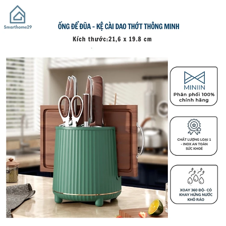 Ống Đựng Đũa Thìa Dao Thớt Xoay 360 Độ có Đế Thoát Nước Tiện Lợi - Kệ Cài Dao Nhà Bếp - HÀNG CHÍNH HÃNG MINIIN