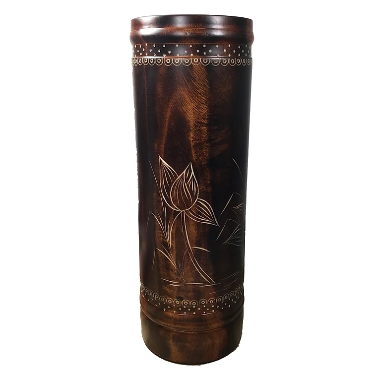 Ống đựng nhang gỗ khắc nổi hoa sen cao 32cm