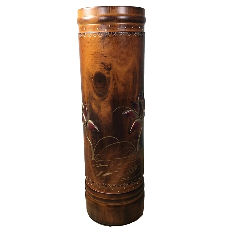 Ống đựng nhang gỗ khắc nổi hoa sen cao 32cm