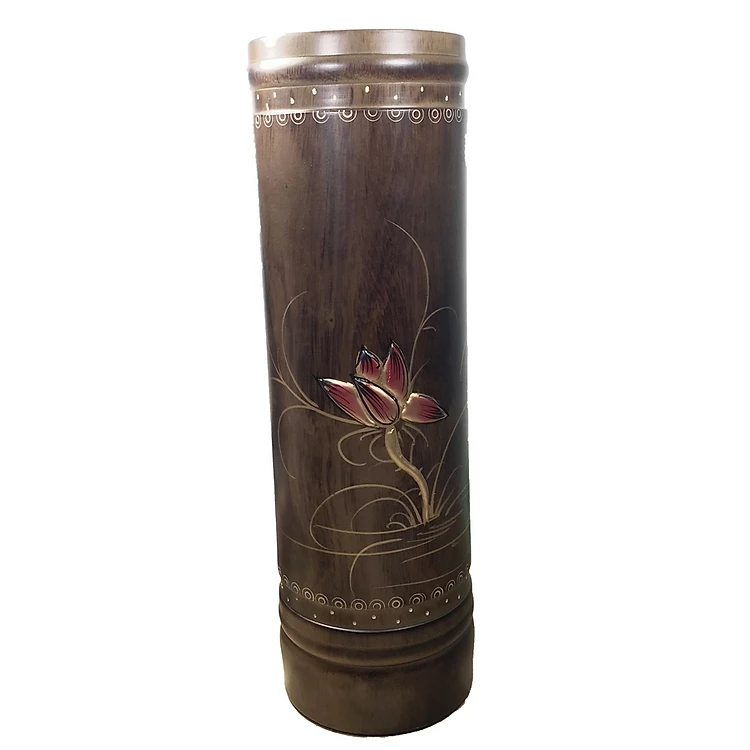 Ống đựng nhang gỗ khắc nổi hoa sen nâu gỗ sẫm cao 32cm