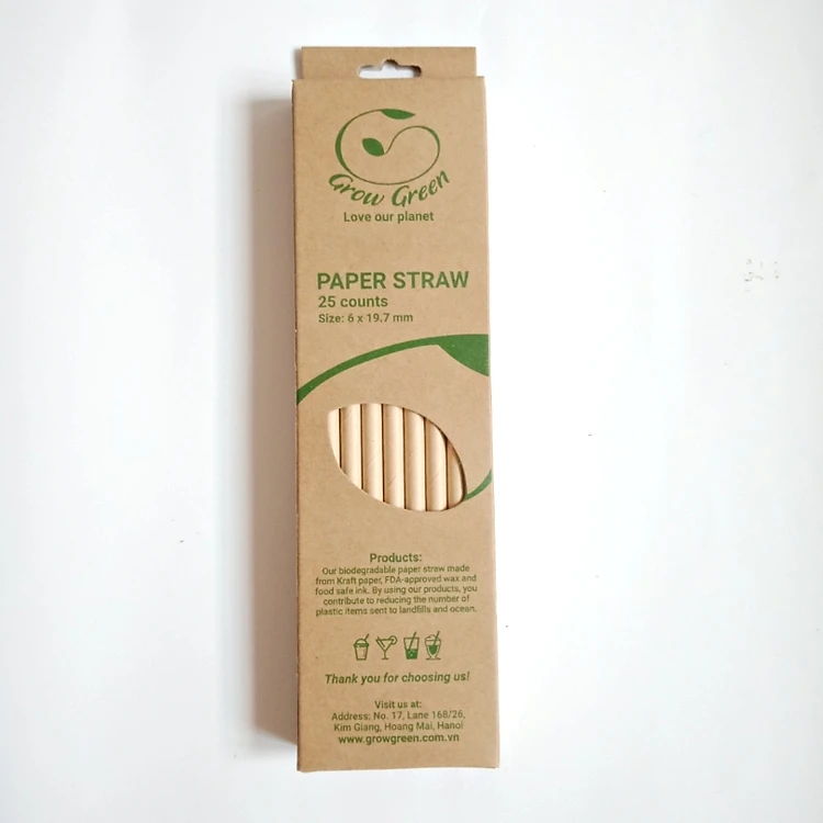 Ống hút giấy Growgreen màu giấy kraft nguyên bản