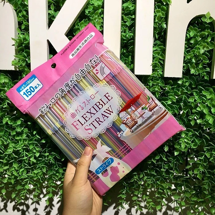 Ống hút nhựa an toàn nhiều màu dài 18cm có thể gập đầu (150/300 ống) tặng 2 zipper 10cm