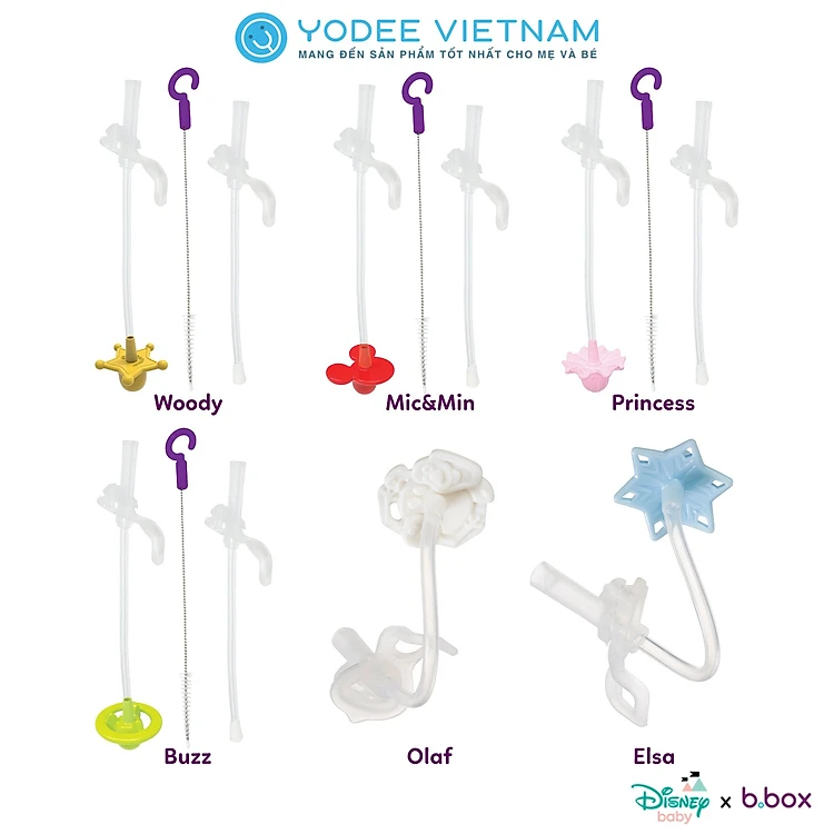 b.box Bộ ống hút thay thế và dụng cụ vệ sinh tiện dụng cho bình nước 360 dộ