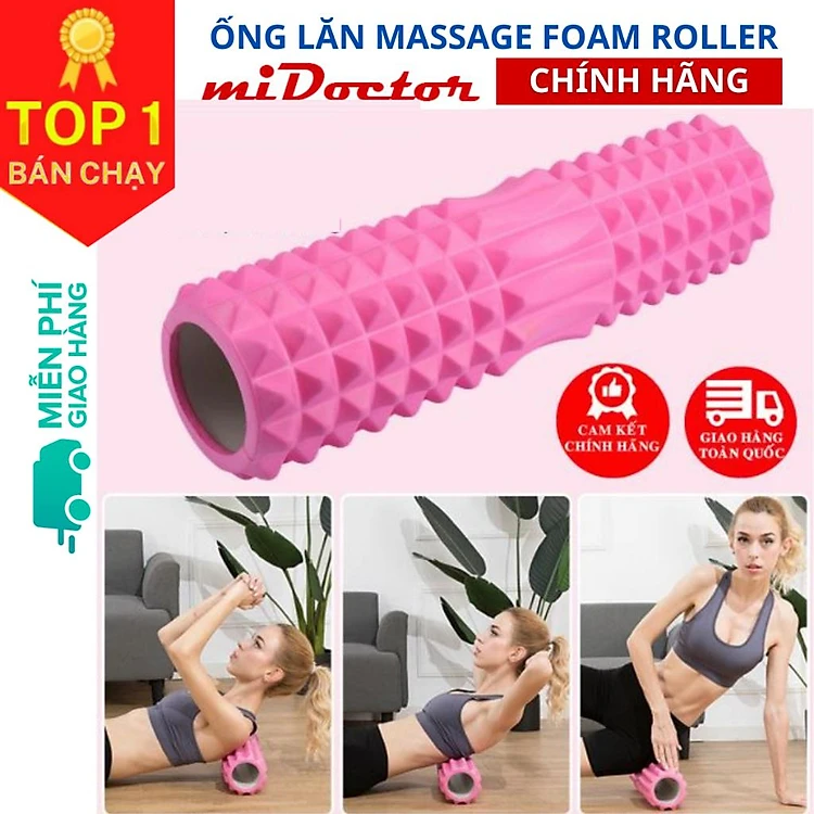 Ống lăn Foam Roller Massage - Con Lăn Yoga Matxa Giãn Cơ Ống Trụ Lăn Xốp Có Gai Hãng miDoctor