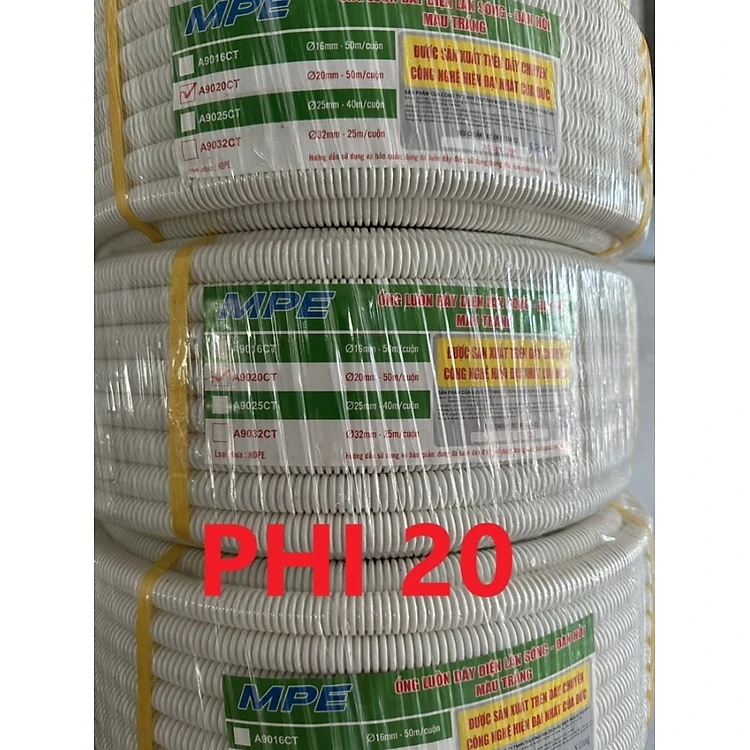 Ống ruột gà trắng MPE phi 16/20/25/32 luồn dây điện, chống cháy tốt (cuộn 25m, 40m, 50m) - Hàng chính hãng