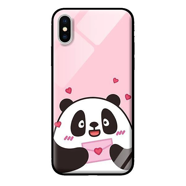 Ốp kính cường lực cho iPhone XS Panda Nền Hồng - Hàng chính hãng
