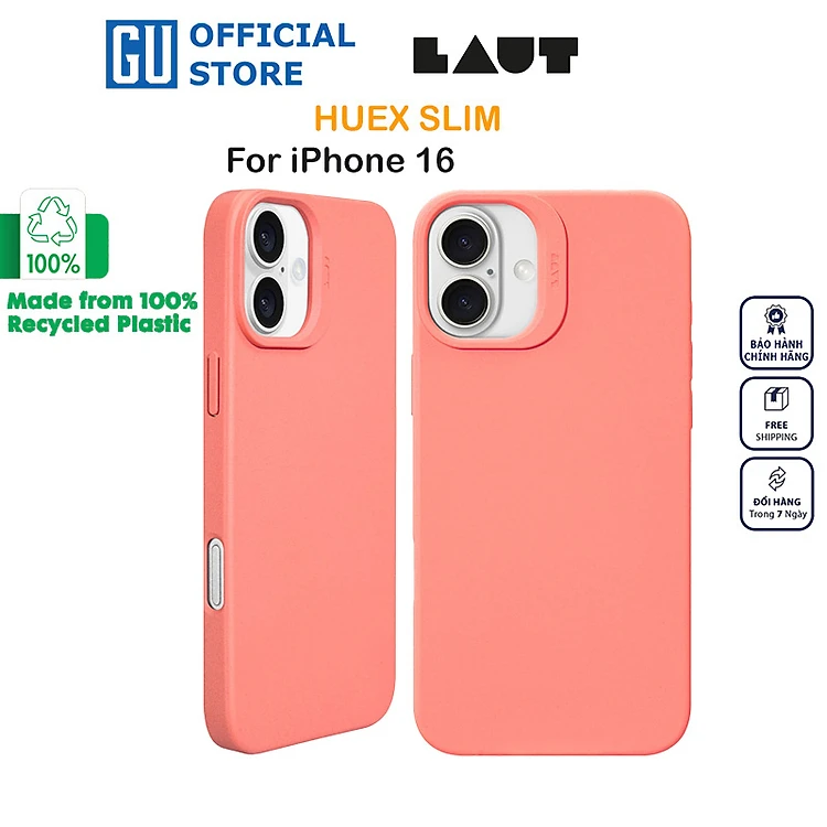 Ốp LAUT HUEX SLIM Cho iPhone 16 Có Sạc Không Dây Thiết Kế Mỏng Nhẹ Chống Trượt Được Làm Từ 100% Nhựa Tái Chế Hàng Chính Hãng