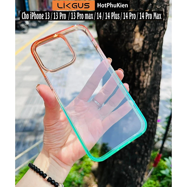 Ốp lưng chống sốc cho iPhone 13 / 13 Pro / 13 Pro Max / 14 / 14 Plus / 14 Pro / 14 Pro Max hiệu Likgus Gradient Clear - Thiết kế thời trang, chống chịu mọi va đập, gờ bảo vệ camera - Hàng nhập khẩu