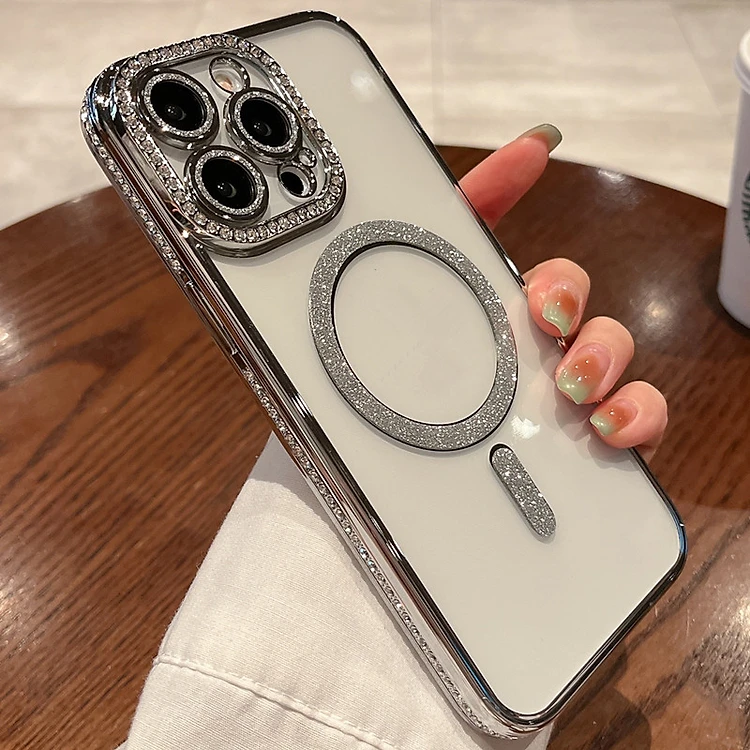 ốp lưng cho iphone 15 pro max / 14 promax đính đá kim tuyến có lens bảo vệ camera - hàng nhập khẩu chính hãng