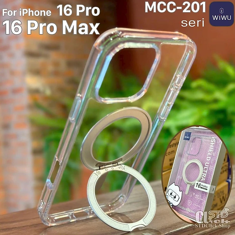 Ốp lưng cho iPhone 16 Pro Max - 16 Pro - 16 Plus - 16 hiệu WI WU MCC-201 nhựa cứng trong viền dẻo + vòng nam châm kiêm giá đỡ - Hàng chính hãng
