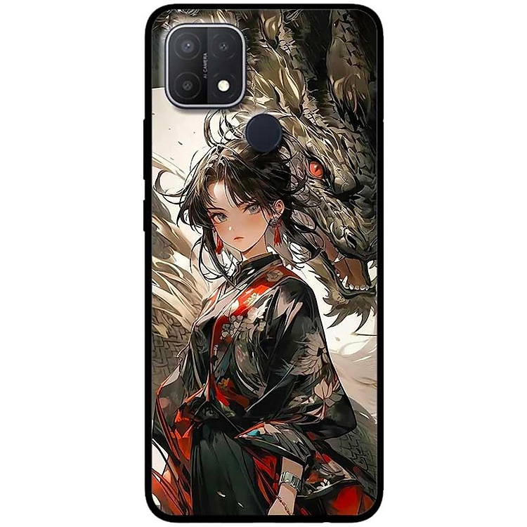 Ốp lưng cho Oppo A15 - A15S - A17 - A17K - A57 4G - A94 5G - A95 5G - Cô Gái Và Rồng Đen - Hàng Chính Hãng