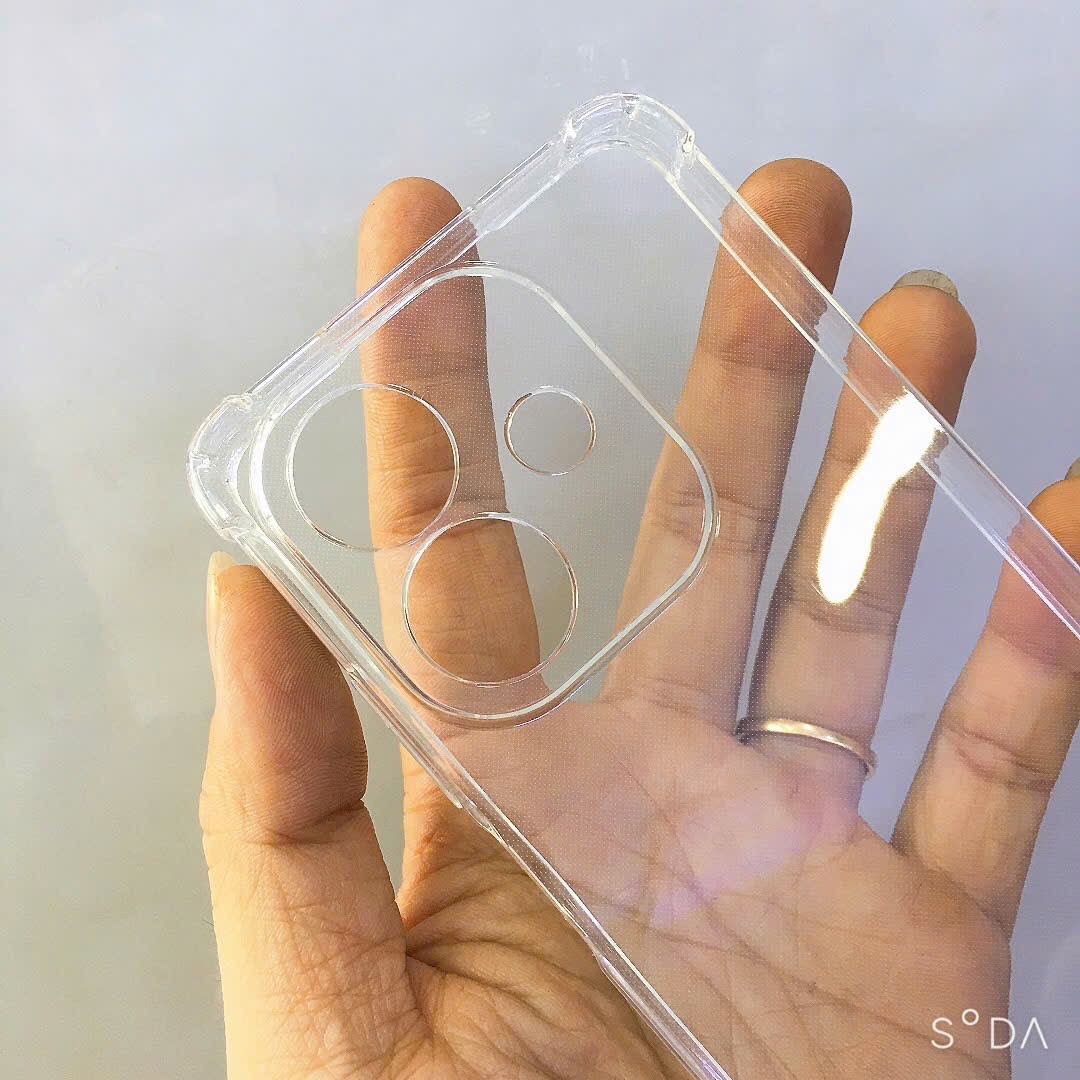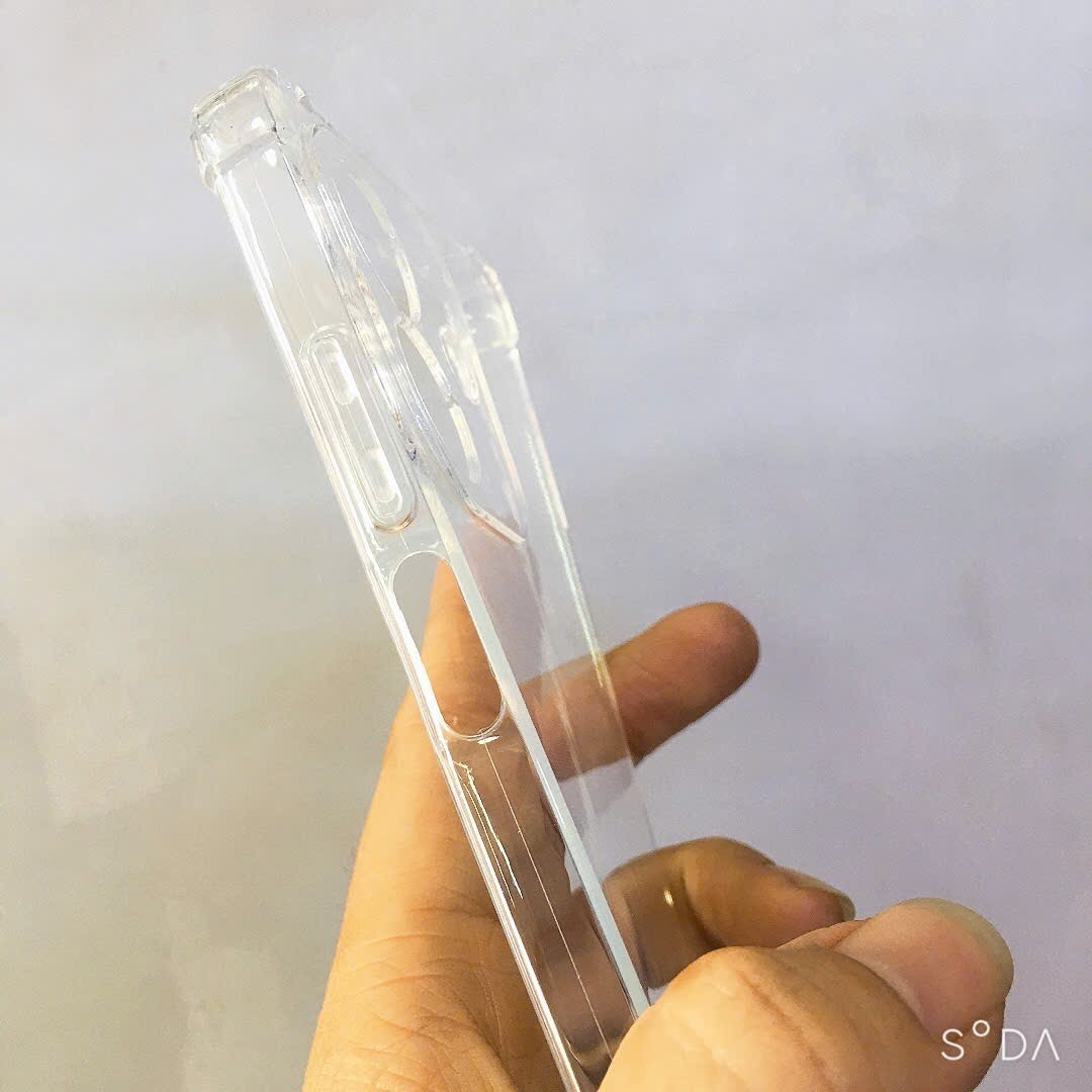 Chất liệu TPU dày 0.9 mm, mềm dẻo, trong suốt, có độ đàn hồi cao, có thể bóp lại, cuộn lại mà không biến dạng. Chất liệu dày dặn hơn ốp dẻo trong suốt thường, 4 góc được làm dày hơn để chống sốc cho máy (khi rơi thường vào vị trí 4 góc), các gai chống sốc nằm phía trong ốp lưng, phần tiếp xúc với máy, giúp chống sốc khi rơi rớt, nên khi cầm tay không bị gợn