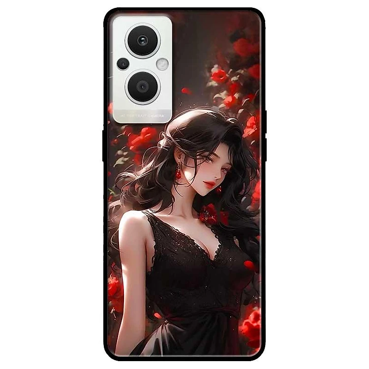 Ốp lưng cho Oppo Reno 2Z, 2F - 6z - 7z 5G - 8z 5G - A96 5G - 8T 4G - 8T 5G - Cô Gái Đầm Đen - Hàng Chính Hãng