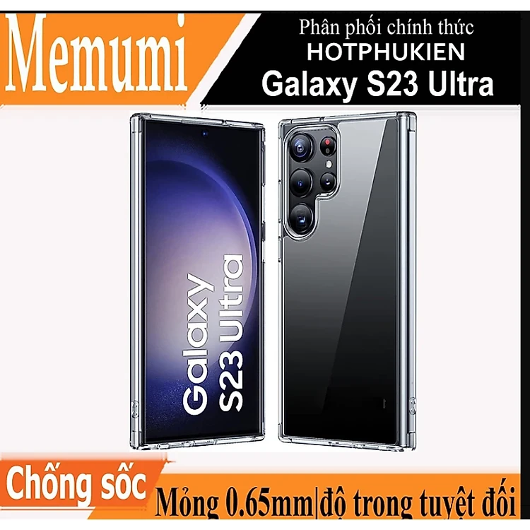 Ốp lưng siêu mỏng 0.65mm cho Samsung Galaxy S23 Ultra hiệu Memumi Clear Case thiết kế trong suốt với độ trong tuyệt đối, không bị ố vàng theo thời gian, hỗ trợ tản nhiệt siêu tốt- Hàng nhập khẩu