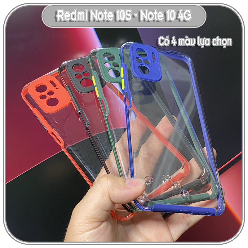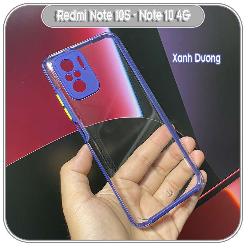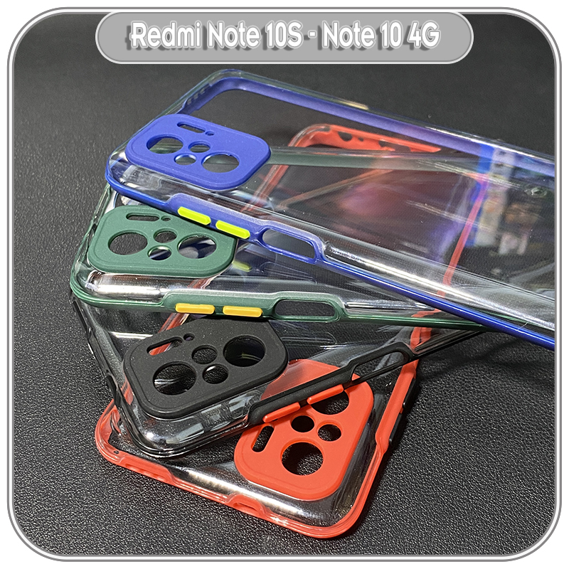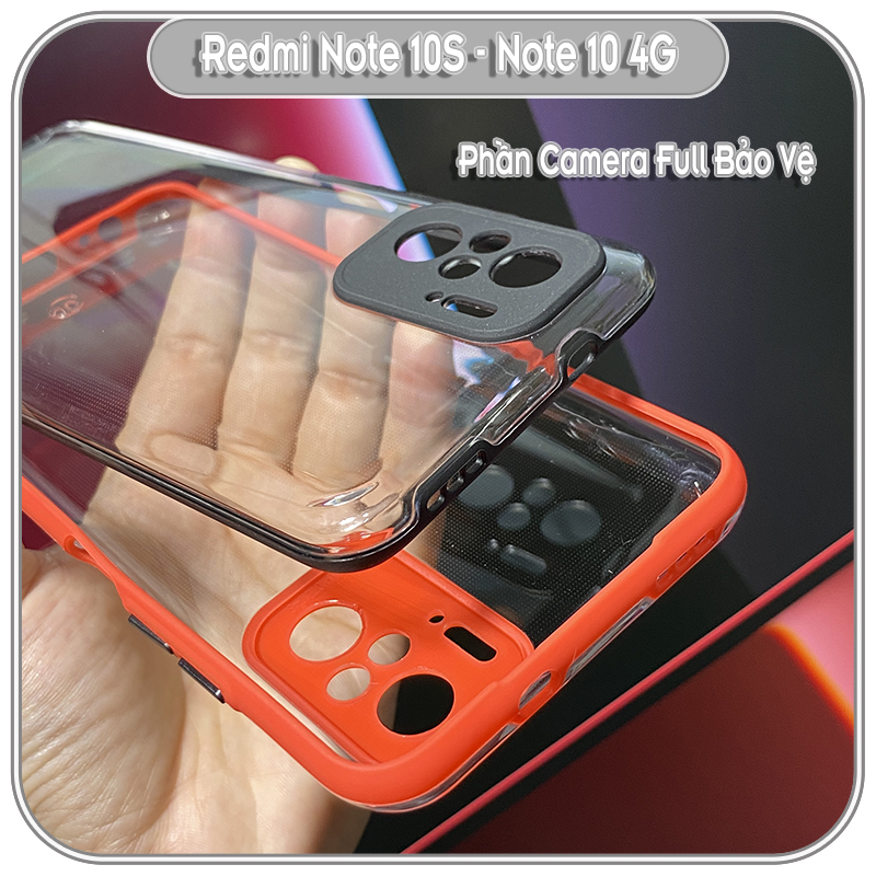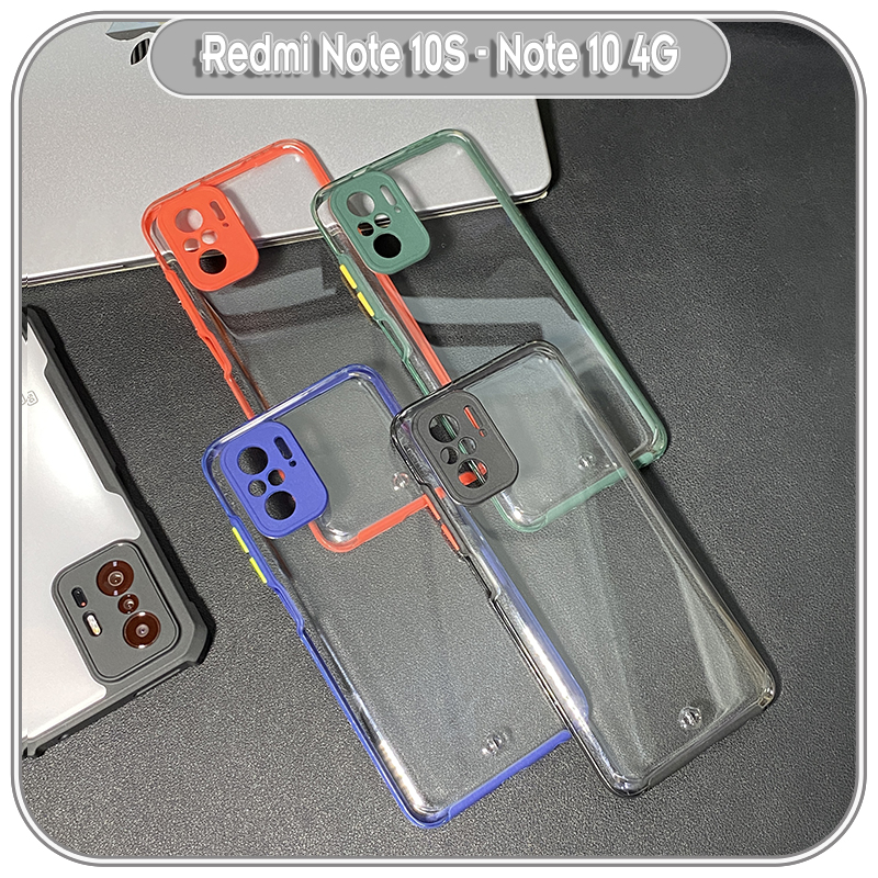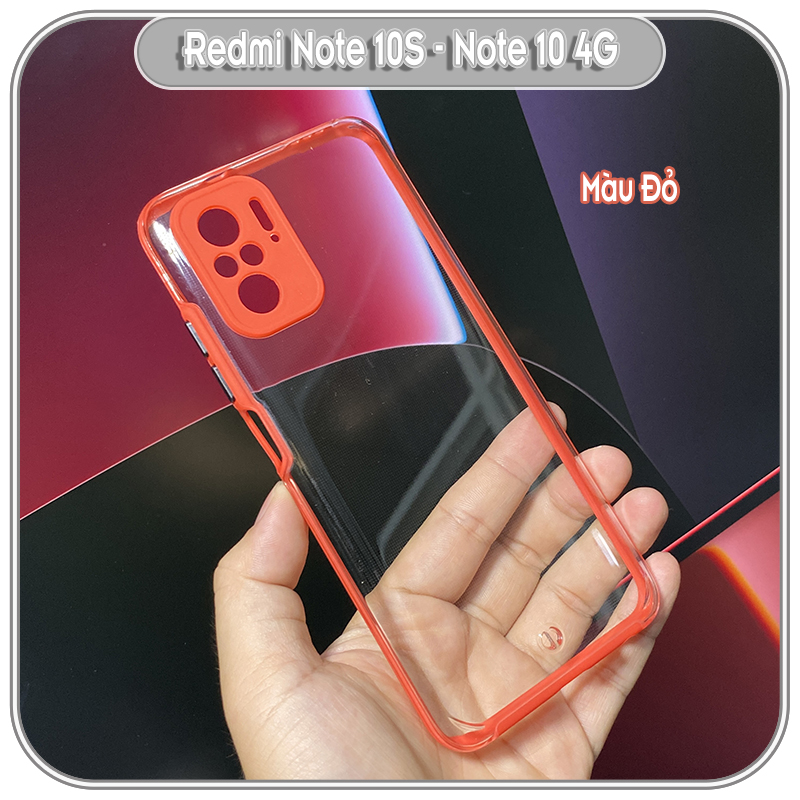 Ốp Lưng cho Xiaomi Redmi Note 10S - Note 10 4G PC Trong Suốt Viền Màu Mỏng ,Che Camera