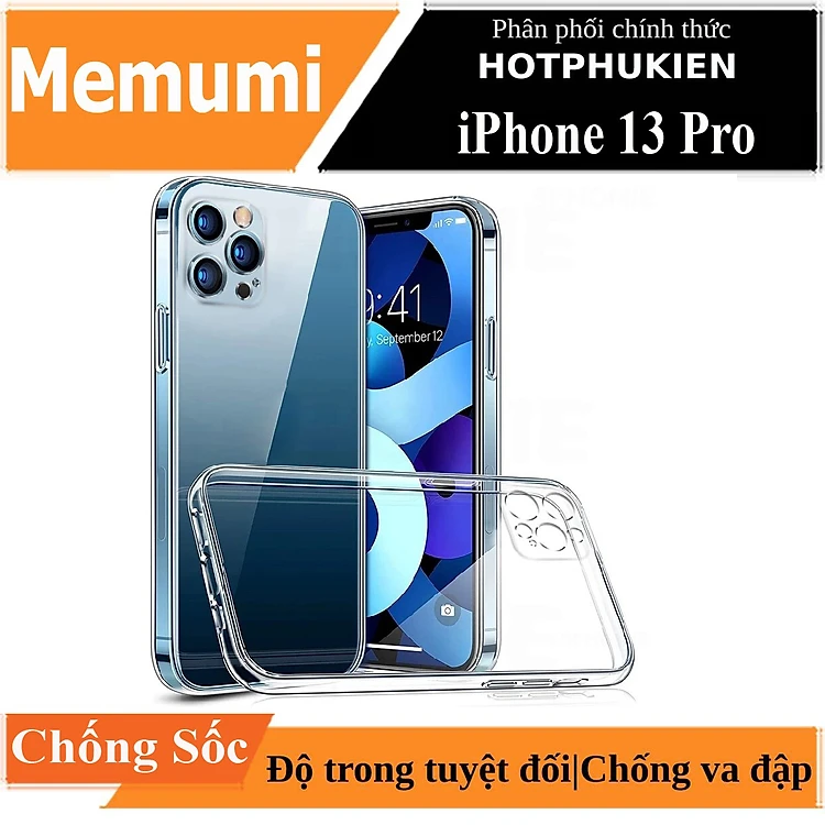 Ốp lưng chống sốc bảo vệ camera cho iPhone 13 / 13 Pro / 13 Pro Max hiệu Memumi Glitter siêu mỏng 1mm Độ trong tuyệt đối, chống trầy xước, chống ố vàng, tản nhiệt tốt - hàng nhập khẩu