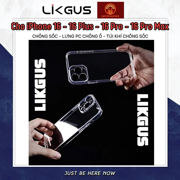 Ốp lưng chống sốc bảo vệ màng camera cho iPhone 16, 16 Plus, 16 Pro, 16 Pro Max hiệu Likgus Camshield - Thiết kế trong suốt, chống ố vàng - Hàng nhập khẩu
