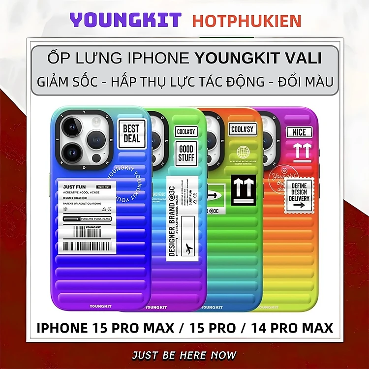 Ốp lưng chống sốc cho iPhone 15 Pro Max / 15 Pro / 14 Pro Max hiệu HOTCASE Youngkit Gradient phối màu cá tính chống sốc va đập, túi khí tản lực - Hàng nhập khẩu