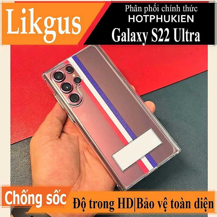 Ốp lưng chống sốc trong suốt cho Samsung Galaxy S22 Ultra hiệu Likgus Thom Brow (chất liệu cao cấp, thiết kế thời trang họa tiết 3 sọc màu) - hàng nhập khẩu