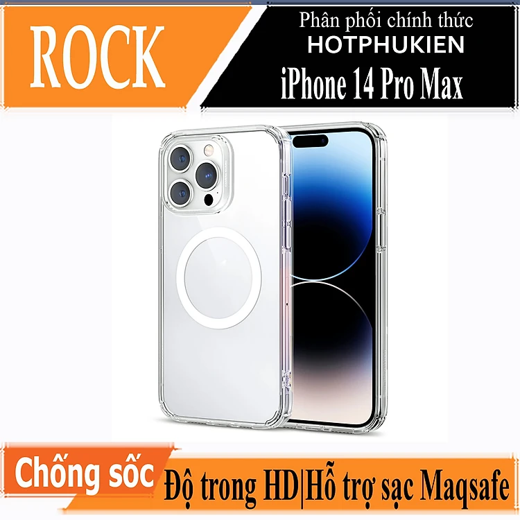 Ốp lưng chống sốc trong suốt hỗ trợ sạc Maqsafe cho iPhone 14 Pro Max (6.7 inch) hiệu Rock Protection Maqsafe Magetic Case (siêu mỏng 1.5mm, độ trong tuyệt đối, chống trầy xước, chống ố vàng, tản nhiệt tốt) - hàng nhập khẩu