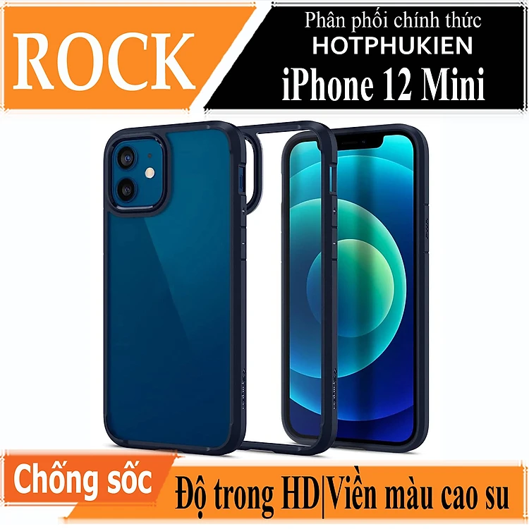 Ốp lưng chống sốc viền cao su cho iPhone 12 Mini thiết kế mặt lưng trong suốt Hiệu Rock hybrid Protective Case (độ đàn hồi cao, bảo vệ toàn diện, tản nhiệt tốt) - hàng nhập khẩu