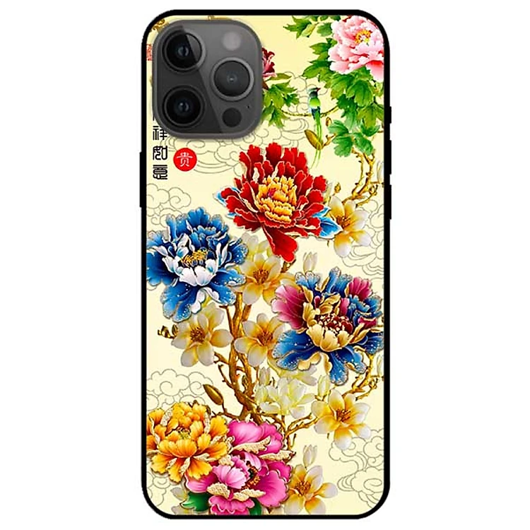 Ốp lưng dành cho Iphone 12 Promax mẫu Mẫu Đơn Vàng Xanh