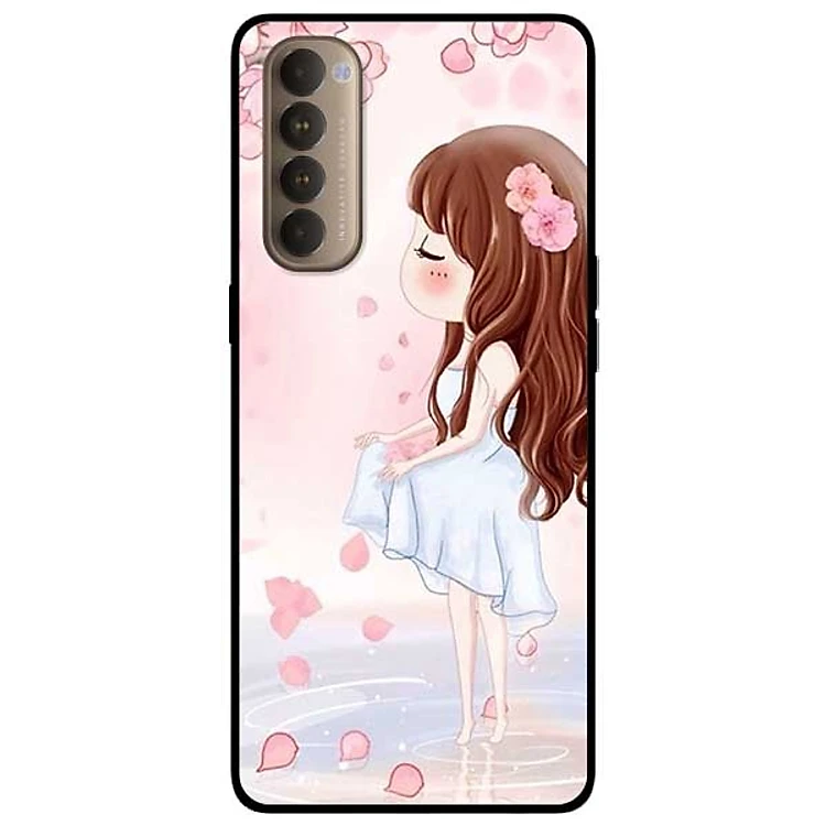 Ốp lưng dành cho Oppo Reno 4 Pro mẫu Cô Gái Váy Trắng Nền Hoa Đào