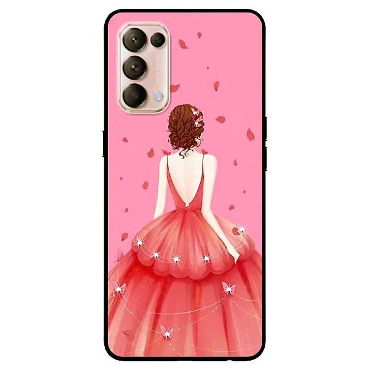 Ốp lưng dành cho Oppo Reno 5 mẫu Cô Gái Váy Hồng