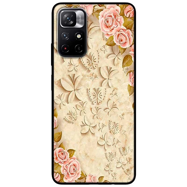 Ốp lưng dành cho Xiaomi Redmi Note 11 5G - Redmi Note 11T - Redmi Note 11S - Hoa Hồng Lá Vàng
