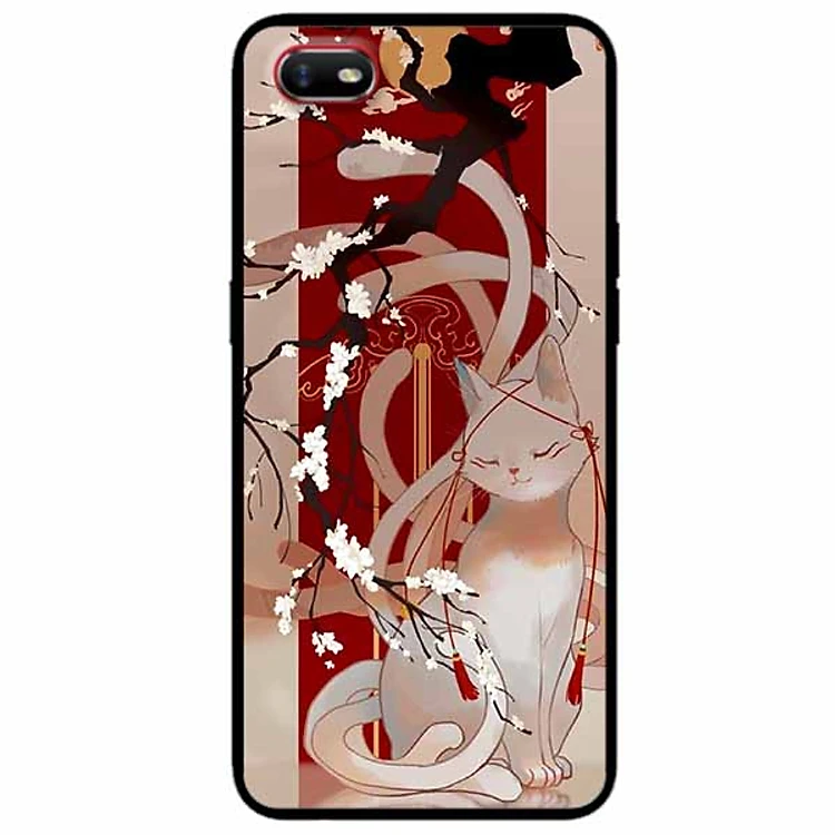 Ốp lưng in cho Oppo A1K Mẫu Mèo Cành Hoa Đào