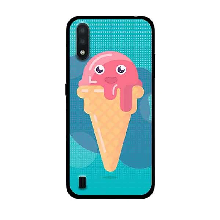 Ốp Lưng in cho Samsung Galaxy A01 Mẫu Kem Mặt Cười Nền Hồng - Hàng Chính Hãng